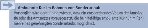 Eine Anerkennung einer ambulanten Kur ist nur zulässig, wenn – vor der erstmaligen Antragstellung eine Beihilfeberechtigung von insgesamt 3 Jahren erfüllt ist, – im laufenden oder in den 3 vorangegangenen Kalenderjahren nicht bereits eine als beihilfefähig anerkannte stationäre oder ambulante Kur- und Rehabilitationsmaßnahme durchgeführt worden ist. Von der Einhaltung der Frist darf nur abgesehen werden, wenn der Amtsarzt dies aus zwingenden medizinischen Gründen für notwendig erachtet. Die als beihilfefähig anerkannte ambulante Kur muss innerhalb von sechs Monaten nach Bekanntgabe des Anerkennungsbescheides oder innerhalb eines im Anerkennungsbescheid unter Beachtung der dienstlichen Belange zu bestimmenden Zeitraums begonnen werden.