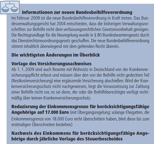In den anderen Ländern weichen die Vorschriften teilweise in geringem Umfang, teils erheblich ab. In diesem Kapitel wird der wesentliche Inhalt der Bundesbeihilfeverordnung dargestellt. Die geltenden aktuellen Bestimmungen der Länder insoweit erläutert, als sie in wichtigen Teilen von den Beihilfevorschriften des Bundes abweichen ( siehe Seiten 237 ff.). Wegen der Komplexität und der Fülle der Regelungen können in diesem Ratgeber nicht alle Einzelheiten dargestellt werden. Ausführliche Informationen zum Thema „Beihilfe" finden Sie unter www.die-beihilfe.de oder im gleichnamigen Ratgeber, siehe Bestellschein am Buchumschlag.