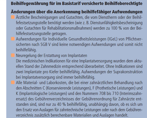 Die bei einer zahnärztlichen Behandlung entstandenen Aufwendungen für zahntechnische Leistungen, Edelmetalle und Keramik – außer Glaskeramik sind zu 40 Prozent, beihilfefähig.