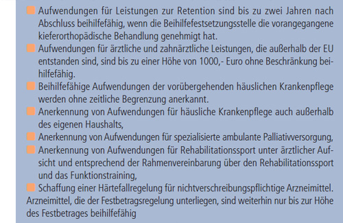Neben den oben aufgeführten Aufwendungen sind beihilfefähig Kosten für