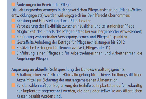 Die Beihilfeleistungen bei Pflegefällen