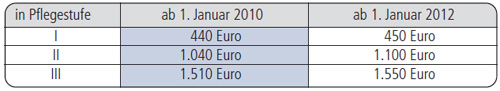 Mit dem In-Kraft-Treten des Pflegeversicherungsgesetzes wurde die Absicherung gegen das Risiko der Pflegebedürftigkeit seit dem 1. Januar 1995 für alle Bürger zur Pflicht. Privat Versicherte waren gesetzlich verpflichtet, zum 1. Januar 1995 eine private Pflegeversicherung abzuschließen. Auch Beamte sind verpflichtet, eine die Beihilfe ergänzende Pflegeversicherung abzuschließen. Die Pflegeversicherung wurde in drei Stufen eingeführt: Am 1. Januar 1995 begann die Beitragspflicht. Die Leistungen für ambulante Pflege werden seit dem 1. April 1995 und die Leistungen für stationäre Pflege seit 1. Juli 1996 erstattet. Diese Leistungen wurden nunmehr mit dem Pflegeweiterentwicklungsgesetz ausgebaut.