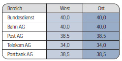 Für den Bereich der Aktiengesellschaften im privatisierten Dienstleistungssektor der Post, Postbank und Telekom gelten abweichende Tabellen.
